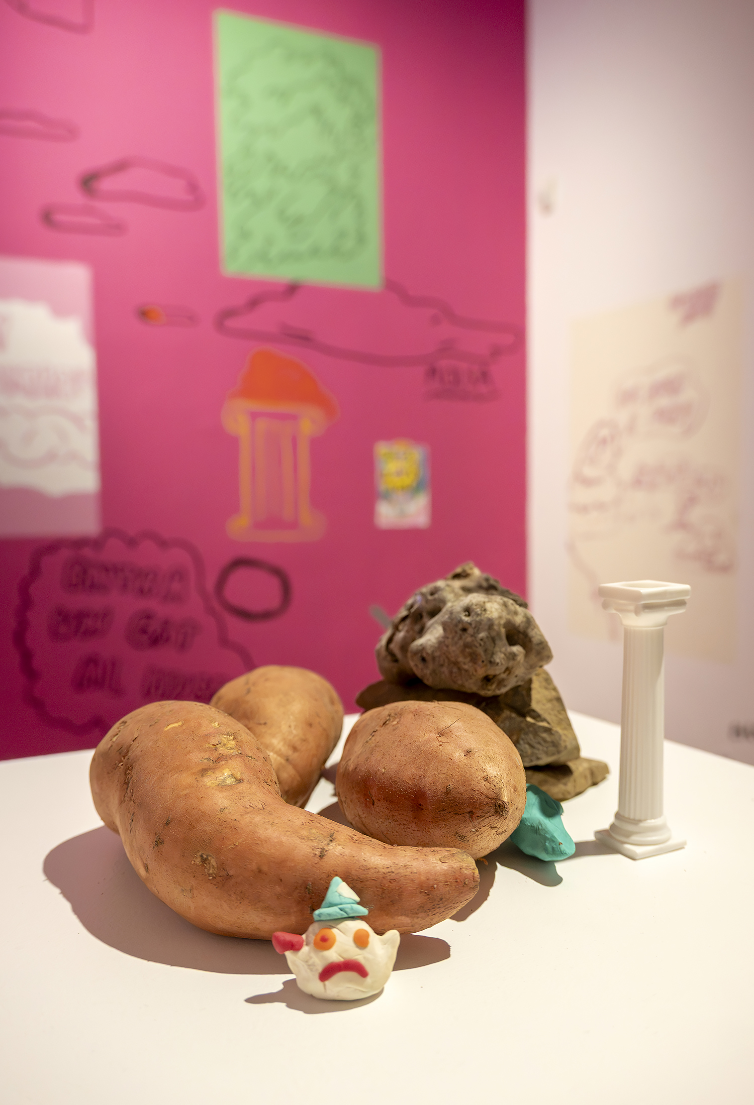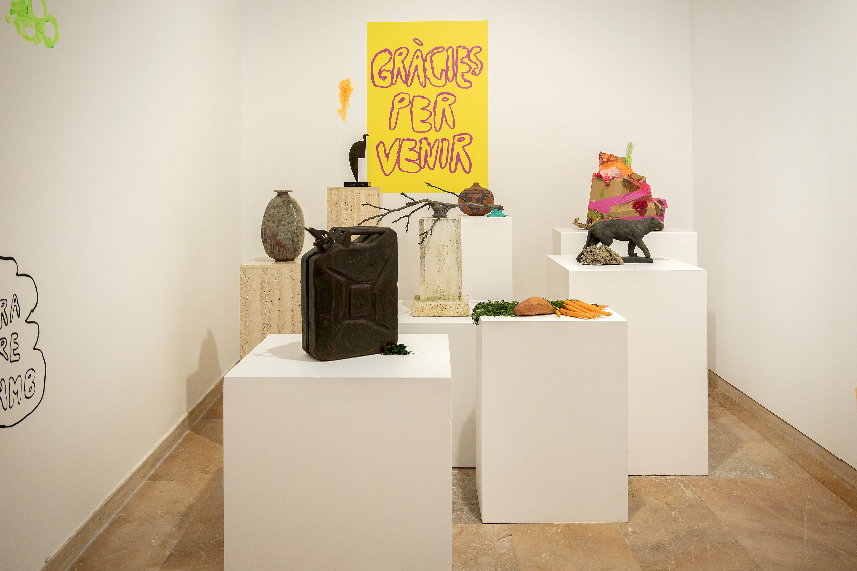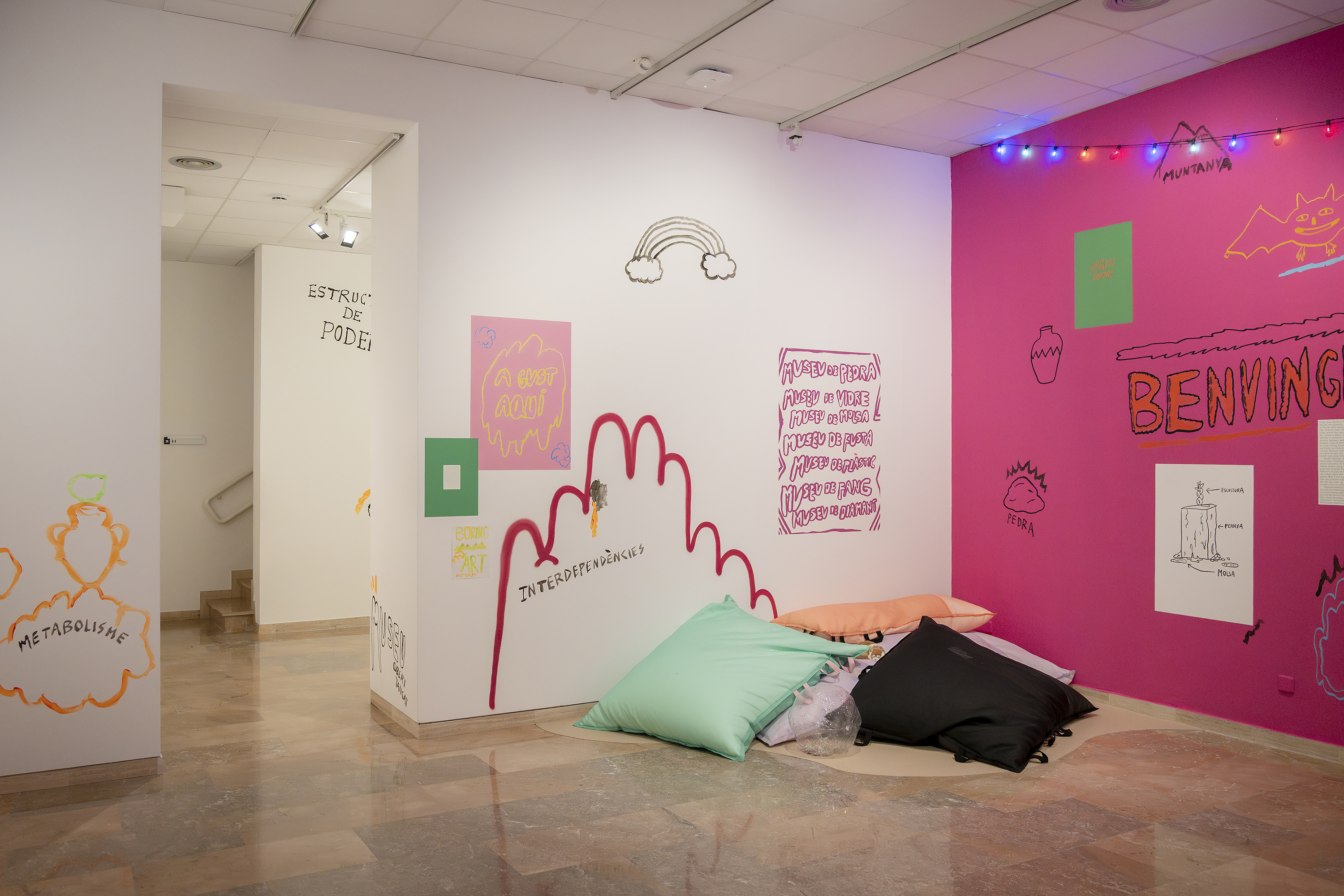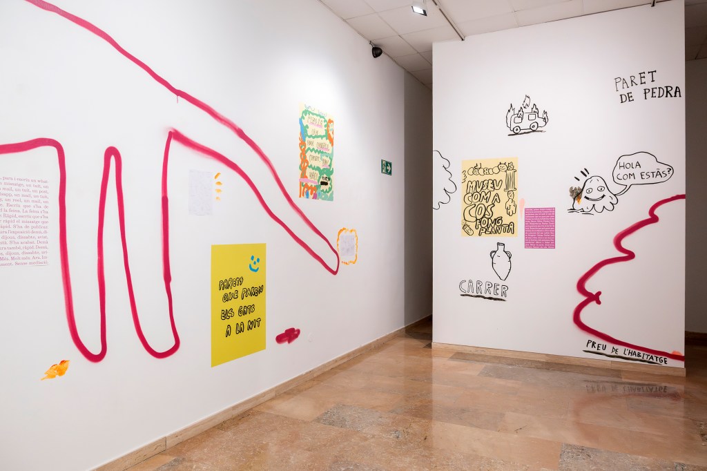 Collapsing Better was an installation at MAMT (Museum of Modern art of Tarragona) 2025, combining wall drawings, found materials, and objects from the museum’s own collection. The exhibition questioned the role of museums today, proposing porous and open forms of institutionality.